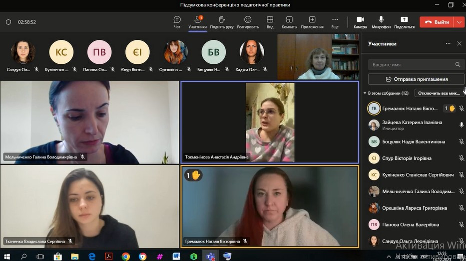 14 та 21 грудня були проведені підсумкові конференції з виробничої (педагогічної з англійської мови та зарубіжної літератури в профільній школі) практики зі здобувачами вищої освіти заочного та денного відділення, за другим (магістерським) рівнем, 1 року навчання освітньо-професійної програми «Середня освіта (Англійська мова і зарубіжна література)» за спеціальністю 014.02 «Середня освіта (Мова і зарубіжна література (англійська))».