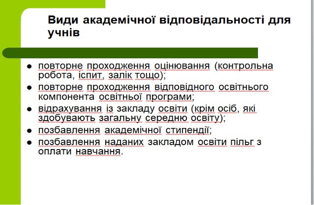 Під час бесіди студенти виявили активність та зацікавленість проблемою академічної доброчесності у навчанні. Зокрема, особливу увагу було приділено наслідкам порушення академічної доброчесності – повторне проходження відповідного освітнього компонента освітньої програми; відрахування із закладу освіти (крім осіб, які здобувають загальну середню освіту); позбавлення академічної стипендії; позбавлення наданих закладом освіти пільг з оплати навчання.