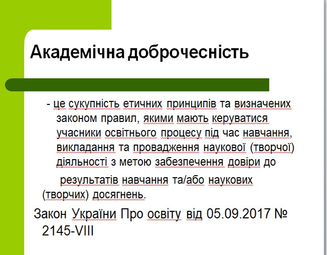 «АКАДЕМІЧНА ДОБРОЧЕСНІСТЬ У НАВЧАННІ»