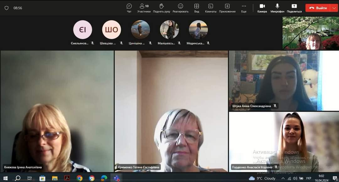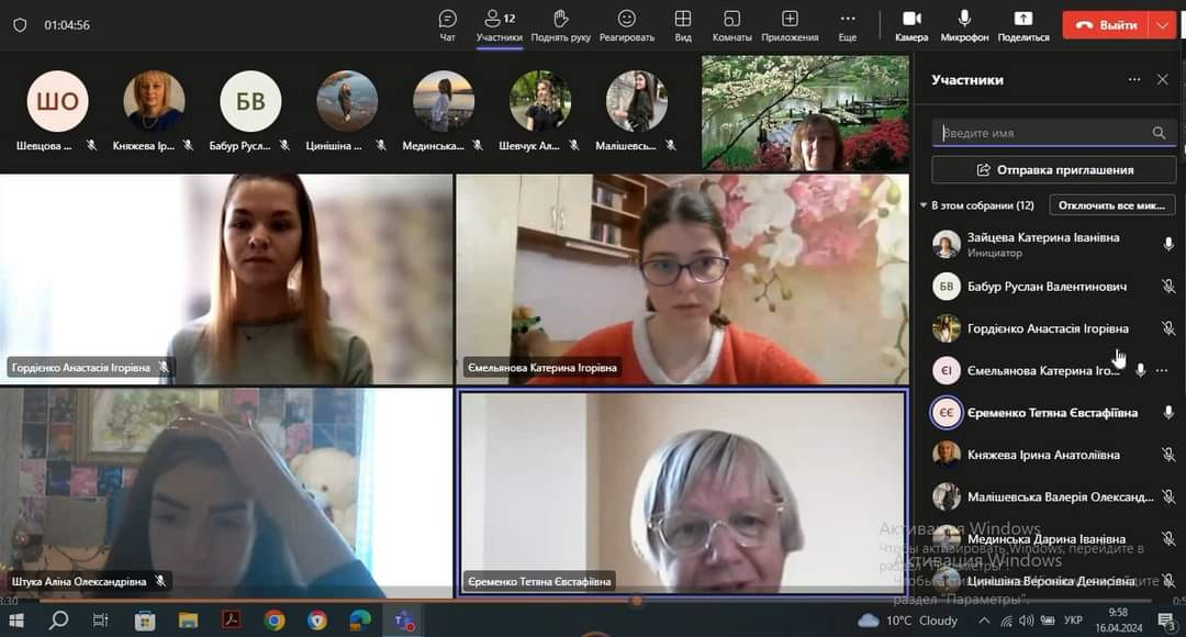 16 квітня провели зі здобувачами вищої освіти 4 року навчання ДВ та ЗВ підсумкову конференцію з виробничої (педагогічної з англійської мови у середній школі) практики освітньо-професійної програми «Середня освіта (Мова і література (англійська))» за спеціальністю 014 Середня освіта (Мова і література (англійська)), яка тривала два місяця.На конференції були присутні керівник з педагогіки, професор кафедри педагогіки Княжева І.А. та члени комісії доцент кафедри германської філології та МВІМ Жаборюк І.А. та завідувач кафеди, професор Єременко Т.Є.