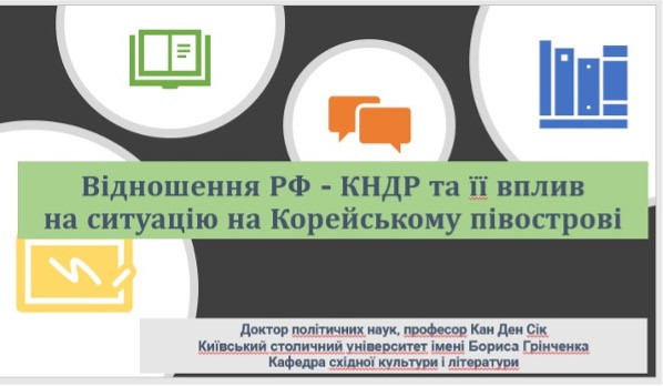 11 лютого 2025 року «Корейський освітній науково-інформаційний та культурний центр Республіки Корея» при Південноукраїнському національному педагогічному університеті імені К. Д. Ушинського в межах реалізації міжнародного проекту організував проведення гостьової онлайн- лекції на тему «Відношення РФ – КНДР та її вплив на ситуацію на Корейському півострові». Лектор: професор кафедри східної культури і літератури факультету східної мови Київського столичного університету ім. Бориса Грінченко, доктор політичних наук пан Кан Ден Сік. Слухачами лекції були студенти спеціальності 014 Середня освіта (Корейська мова та зарубіжна література).