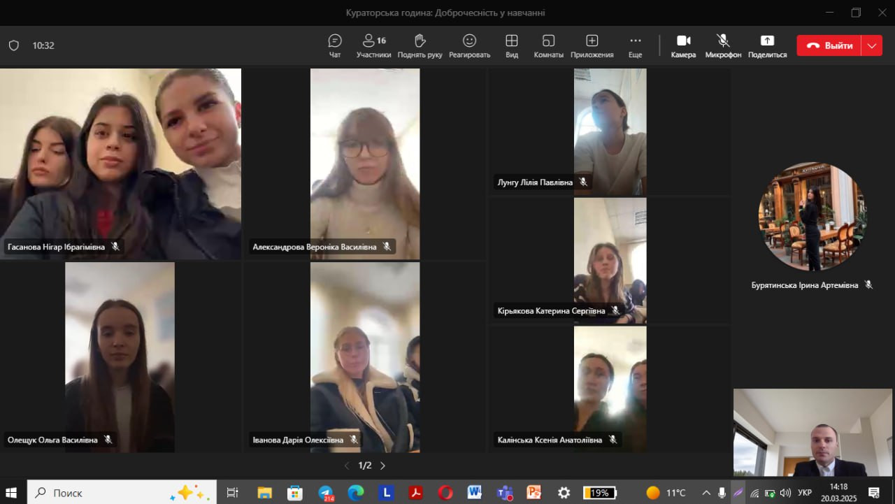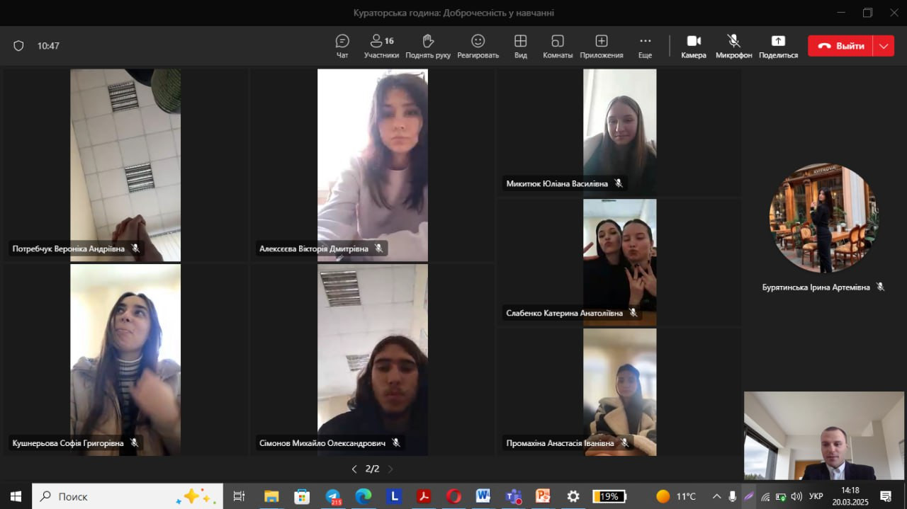 20.03.2025 була проведена бесіда зі студентами 1 курсу бакалаврата 1-ої академічної підгрупи на тему: «Академічна доброчесність у навчанні».