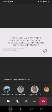 На початку зустрічі завідувач кафедри перекладу і теоретичної та прикладної лінгвістики к.філол.н., доц. Дерік І.М. привітала з нагородами за найкращі студентські наукові роботи лауреатів конкурсу Шпитко І.М. і Кудлай Ю.О.
