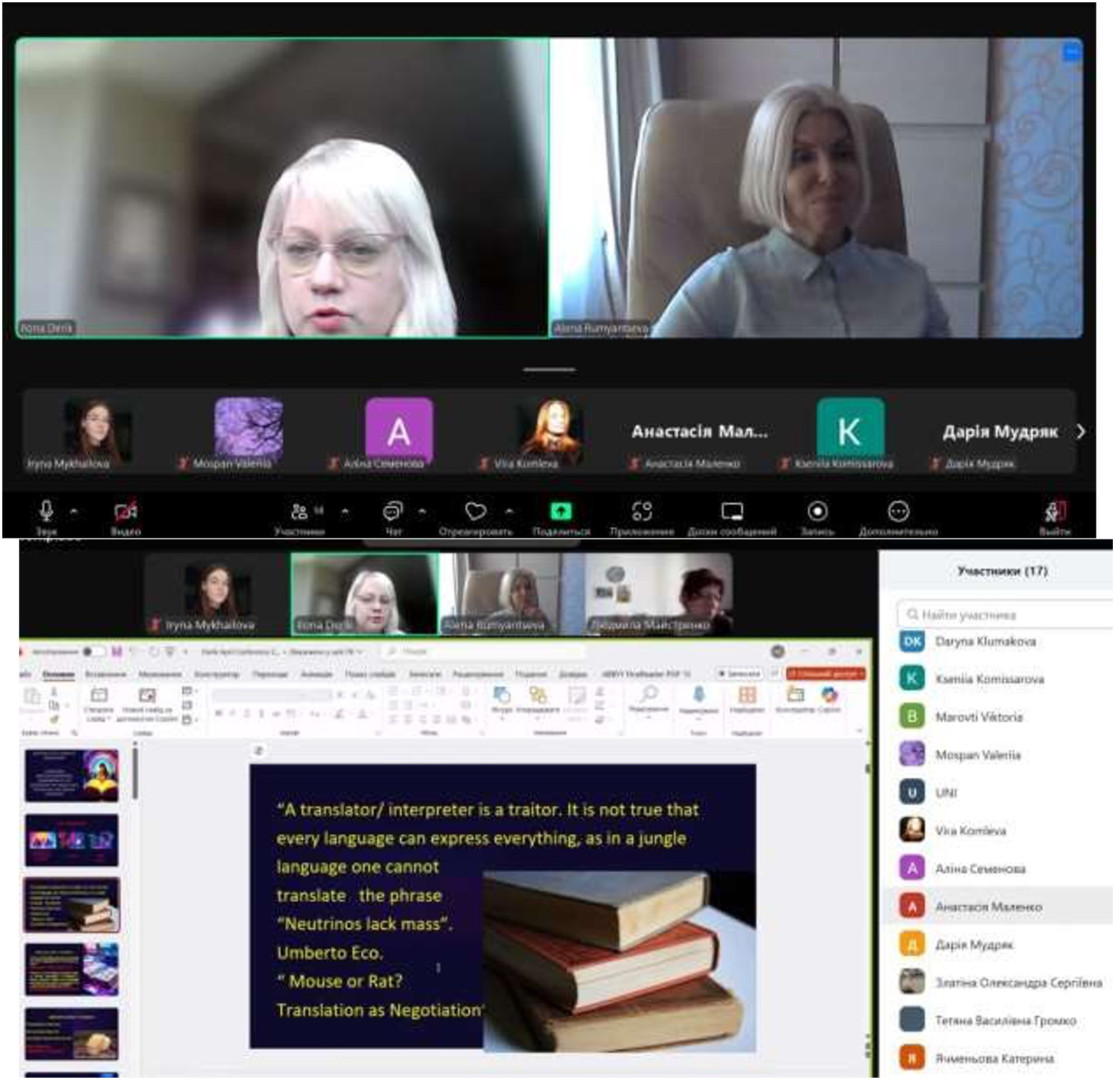 22 травня 2025 року на запрошення ректора Національного університету «Одеська політехніка» у межах програми внутрішньої академічної мобільності «Гостьовий лектор» відбулась гостьова лекція завідувачки кафедри перекладу і теоретичної та прикладної лінгвістики к.філол.н., доцента Ілони ДЕРІК для здобувачів вищої освіти бакалаврського та магістерського рівнів, що навчаються за спеціальністю В11«Філологія» за ОПП «Переклад» на тему “Artificial Intelligence in Translation”.Лекцію було представлено англійською мовою. Актуальність тематики було підтверджено зацікавленістю здобувачів вищої освіти, яку вони продемонстрували, поставивши багато цікавих запитань. Лекцію також відвідала в.о. завідувачки кафедри англійської філології та перекладу Румянцева Олена Анатоліївна та науково-педагогічні працівники кафедри, зокрема д.філол.н., проф. Тетяна ГРОМКО та к.філол.н., доц. Людмила МАЙСТРЕНКО. У подальшому плануються гостьові лекції як науково-педагогічних працівників кафедри перекладу і теоретичної та прикладної лінгвістики, зокрема д.філол.н.. проф. Олександра ІЛІАДІ та д.філол.н., доц. Світлани ЛЮБИМОВОЇ, так і науково-педагогічних працівників кафедри англійської філології та перекладу.