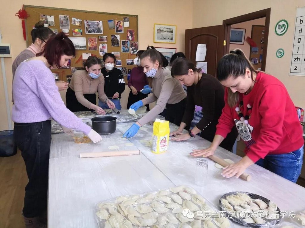 Викладачі з Китаю продемонстрували свої кулінарні таланти. Традиційні китайські страви, а саме цяо-цзи високо оцінили присутні. Пельмені – це головний кулінарний символ новорічної ночі на півночі Китаю та обов’язковий атрибут для друзів із усього світу, який дозволяє відчути «свято весни на кінчику язика». Процес приготування начинки, розкачування тіста до вареників – це смак року і ностальгія за минулими подіями.