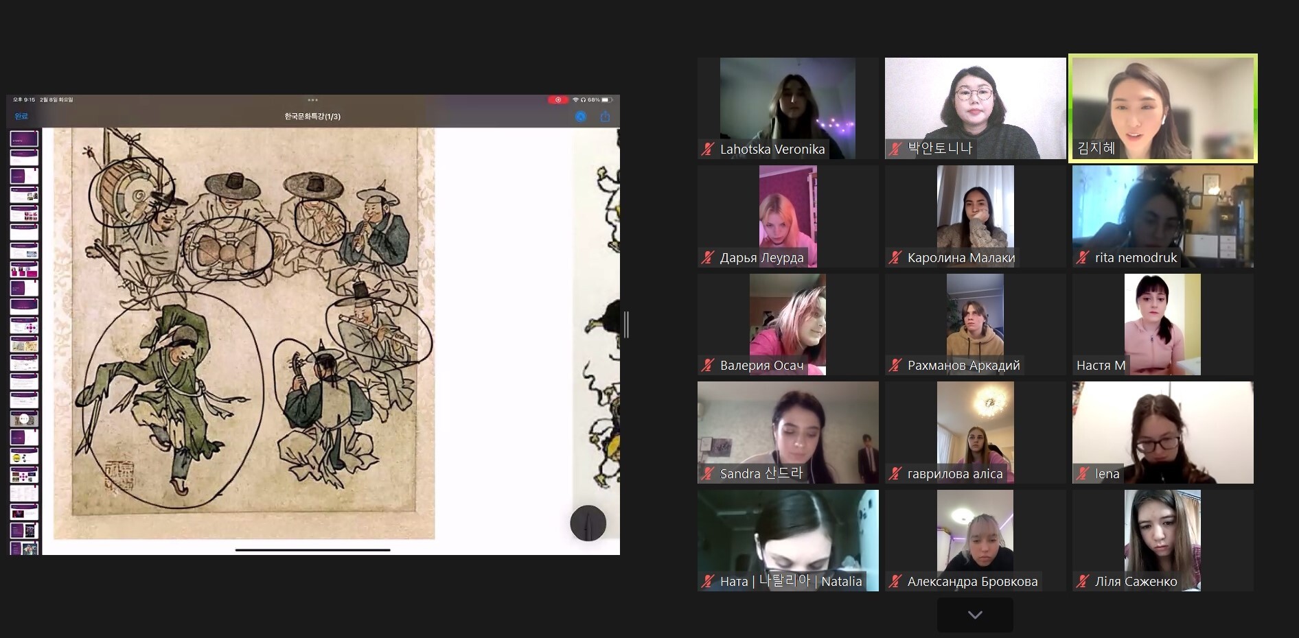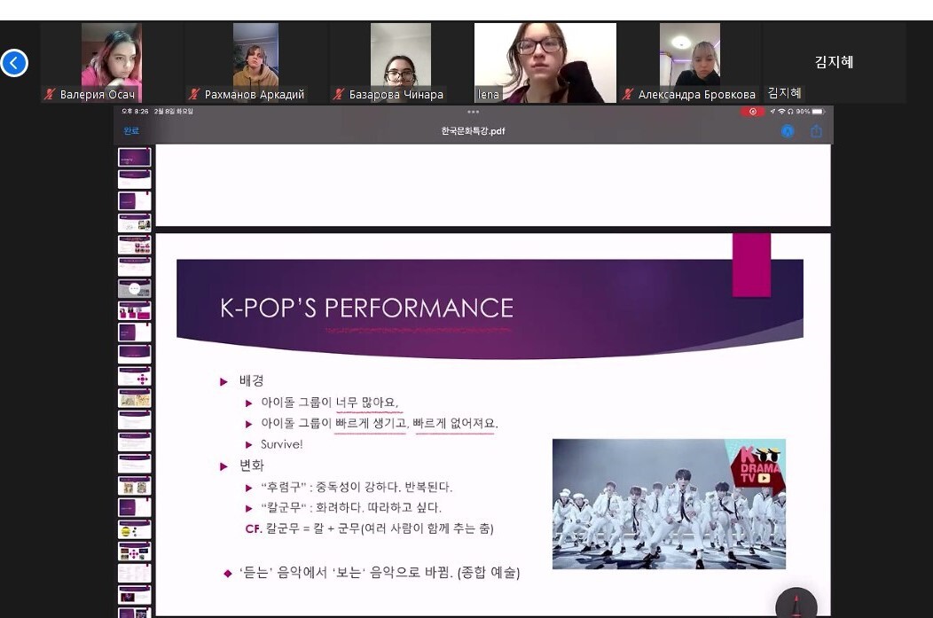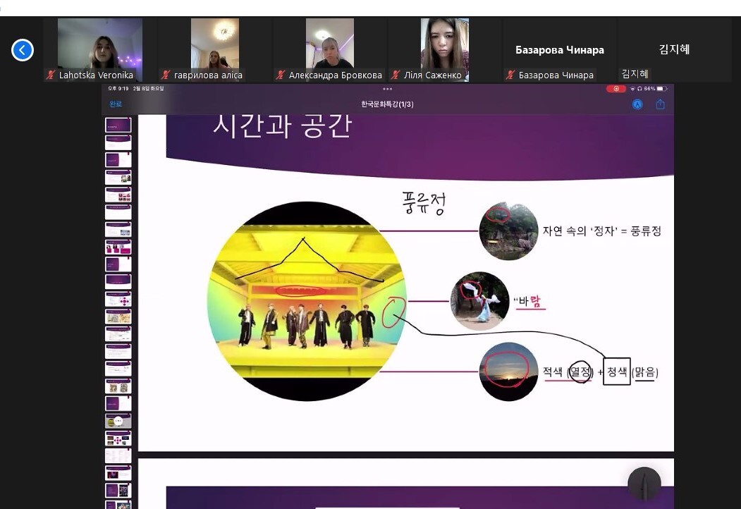 Під час лекції студенти ознайомилися з термінами та поняттями, пов'язаними з популярною корейською культурою та феноменом корейської хвилі «халлю». Цей феномен виник у Південній Кореї, отримав широку популярність у світі через розповсюдження моди на все корейське: поп-музику, серіали, фільми та інші види розважальної індустрії, кухню, косметику, предмети домашнього побуту тощо.