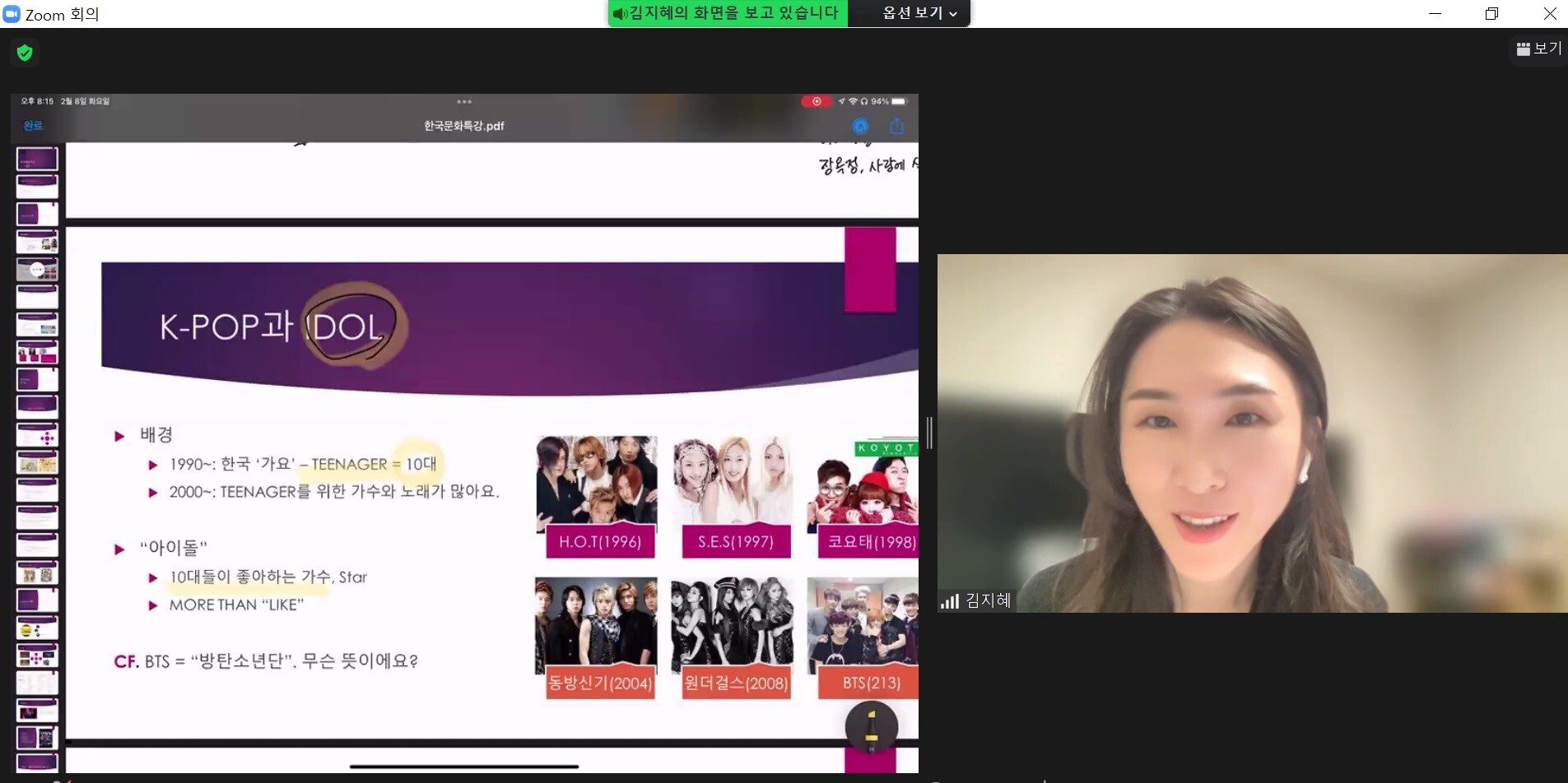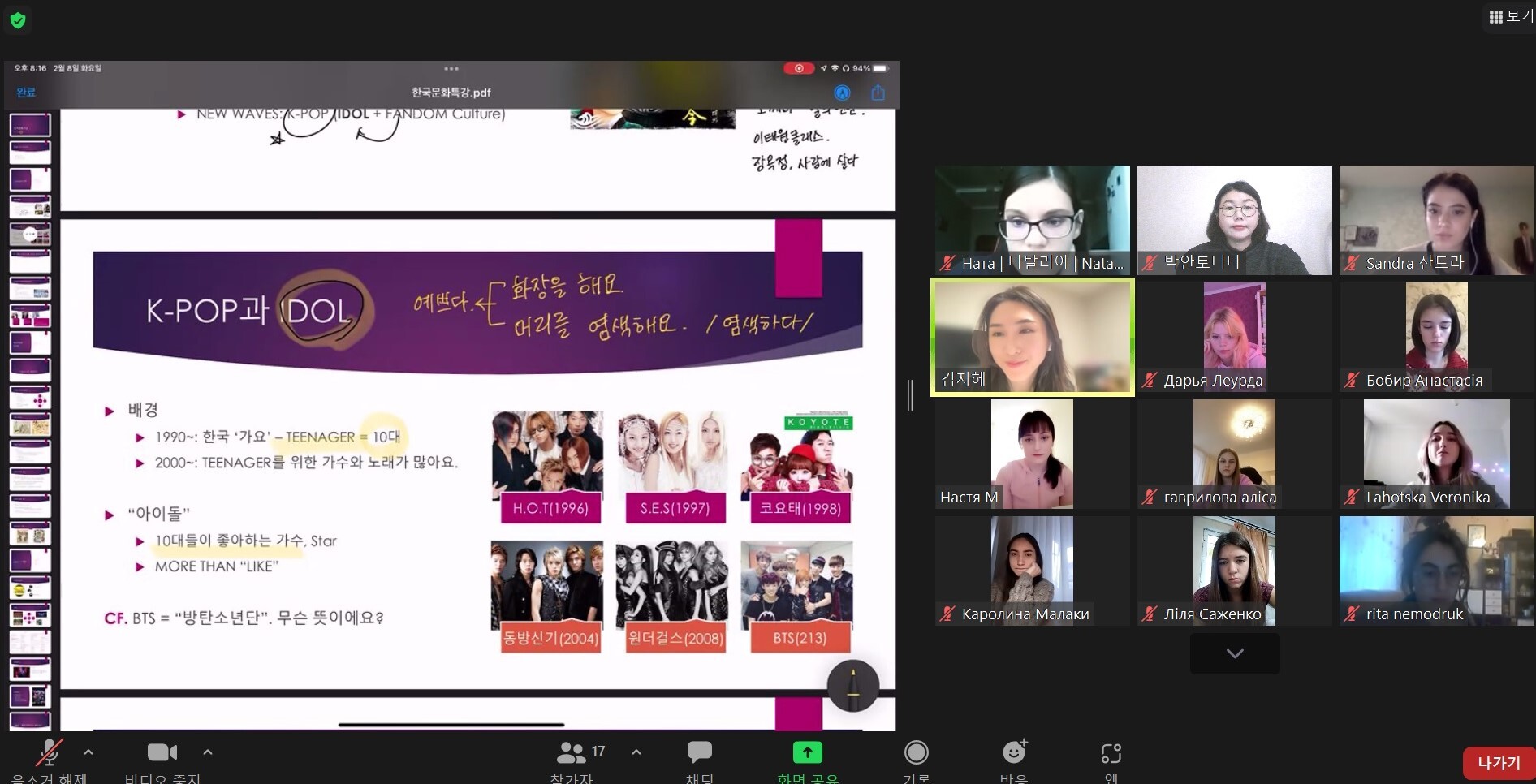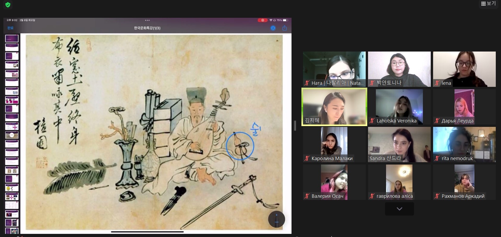 Під час лекції студенти ознайомилися з термінами та поняттями, пов'язаними з популярною корейською культурою та феноменом корейської хвилі «халлю». Цей феномен виник у Південній Кореї, отримав широку популярність у світі через розповсюдження моди на все корейське: поп-музику, серіали, фільми та інші види розважальної індустрії, кухню, косметику, предмети домашнього побуту тощо.