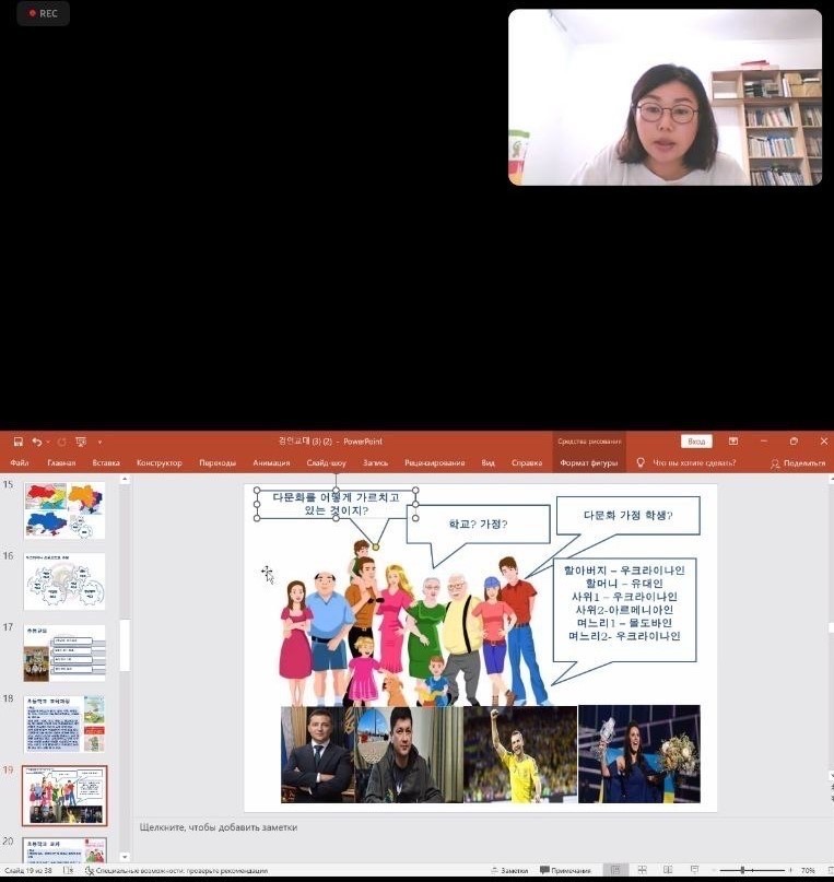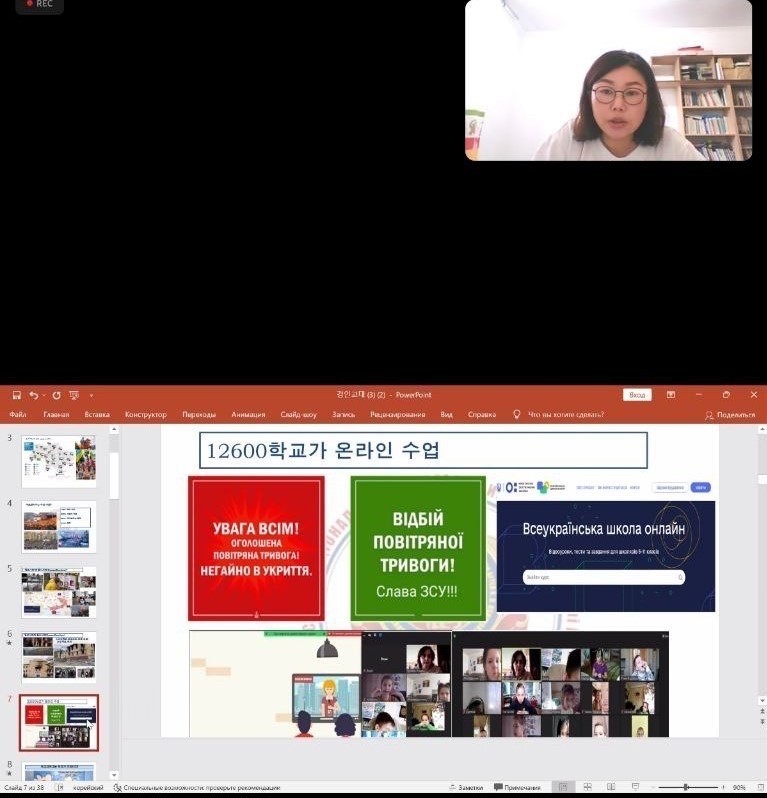 31 травня о 12:30 на платформі Zoom відбулась відкрита лекція старшого викладача кафедри західних та східних мов і методики їх навчання Пак А., на тему "Переосмислення поняття війни та освіти в Україні". В даній лекціїі приймали участь викладачі та студенти Кйонгінського університету (м. Інчон, Республіка Корея). У ході лекції було розглянуто актуальні питання й особливості освіти в Україні, включаючи можливості навчального процесу не зважаючи на воєнний стан.