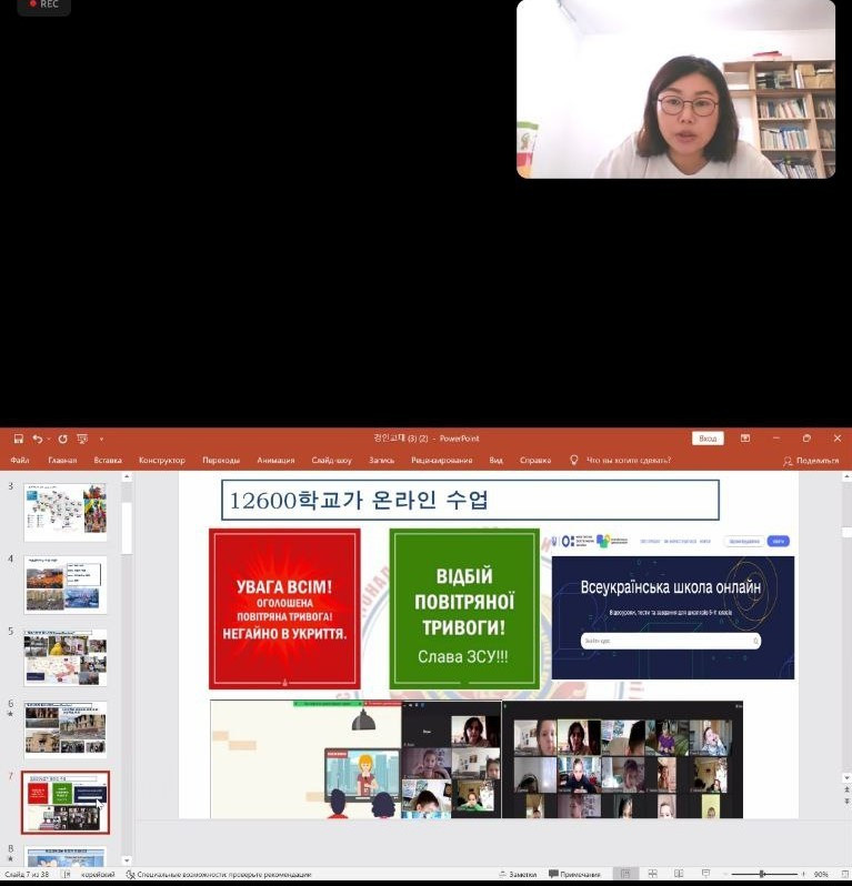 на тему «Переосмислення понять «війна» і «освіта» в Україні». В обговоренні взяли участь викладачі та студенти Кйонгінського національного педагогічного університету (м. Інчхон, Республіка Корея). У ході інтерактивного заняття було розглянуто актуальні питання й особливості освіти в Україні, беручи до уваги можливості організації освітнього процесу в умовах воєнного стану.