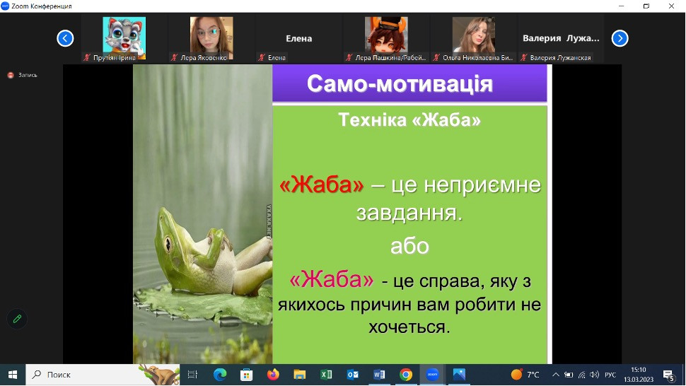 3 березня 2023 року в межах співпраці між ЗВО – партнерами на запрошення гаранта ОПП «Середня освіта (Мова і література (англійська))» другого (магістерського) рівня вищої освіти проф. Т.Є. Єременко та за сприянням доц. Н.О. Валентюк відбулася зустріч з кандидатом економічних наук, доцентом кафедри менеджменту Одеського державного аграрного університету, Н.О. Теличко, яка провела гостьову лекцію-тренінг на тему «Тайм-менеджмент – навчись керувати своїм часом». До заходу доєдналися здобувачі першого (бакалаврського) та другого (магістерського) рівнів вищої освіти ОПП «Середня освіта (Мова і література (англійська))», науково-педагогічні працівники кафедри германської філології (завідувач кафедри проф. Т.Є. Єременко, доц. І.О. Лук’янченко та інші), гарант ОПП «Середня освіта (Мова і література (англійська))» першого (бакалаврського) рівня доц. К. І. Зайцева.