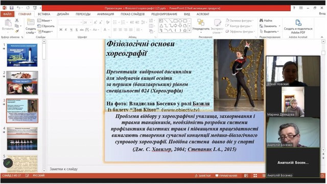 28 лютого з викладачами і студентами факультету було проведено обговорення вибіркових дисциплін на 2024-2025 навчальний рік. Викладачі презентували свої дисципліни і відповідали на запитання здобувачів вищої освіти за бакалаврським і магістерським рівнями, спеціальностей 025 Музичне мистецтво, 014 Середня освіта (Музичне мистецтво) і 024 Хореографія.