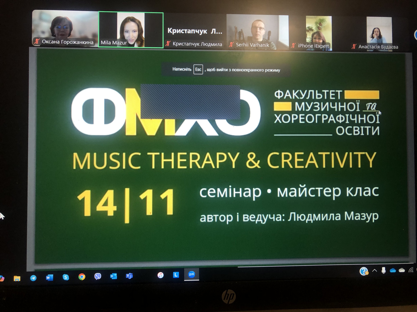 14 листопада 2024 на платформі Zoom на факультеті музичної та хореографічної освіти прйшов семінар - майстер-клас «Музикотерапія та креативність».
