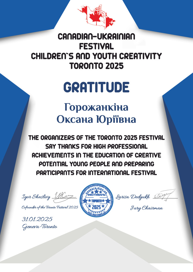 Чжан Ке – Лауреат 1 премії Канадсько-українського фестивалю дитячої та юнацької творчості Торонто 2025 “Женева-Торонто” (клас доц. Горожанкіної О. Ю.).