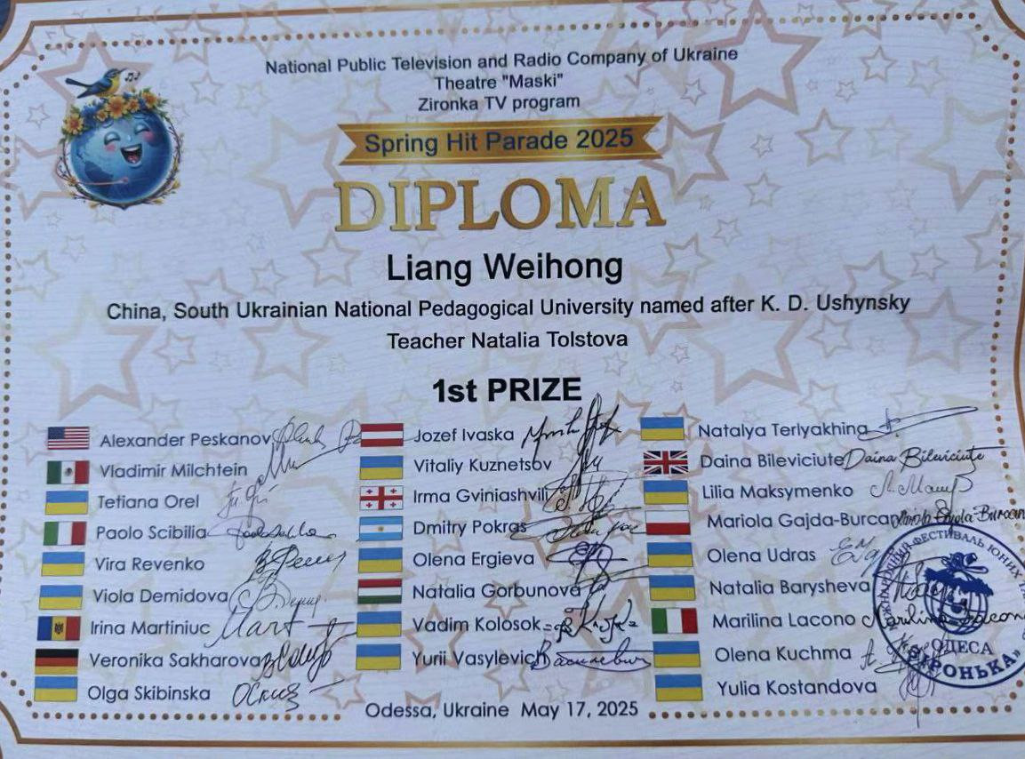 І місце – Лян Вейхун (здобувач підготовчого відділення аспірантури, клас старшого викладача Н. М. Толстової);