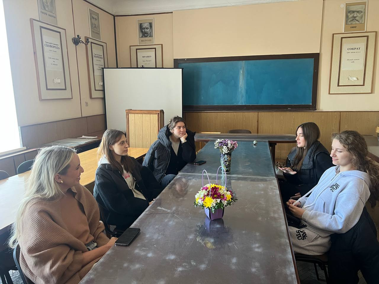 Катерина провела гостьову лекцію, присвячену культурній політиці України, її сучасним викликам, дискурсу та можливостям реалізації у форматі культурних практик і соціокультурних проєктів. Актуальність теми зумовлена потребою переосмислення ролі культури в умовах воєнного часу, важливістю професійного менеджменту у сфері збереження культурної спадщини, підтримки креативних індустрій і формування нових моделей взаємодії між державними та громадськими ініціативами. Після виступу відбулося інтерактивне обговорення в атмосфері жвавого діалогу, присвячене актуальним питанням управління культурними процесами, комунікації з аудиторією та розробленню соціокультурних проєктів. У результаті зустрічі здобувачі поглибили розуміння принципів сучасної культурної політики України; отримали практичні знання про проєктний менеджмент у сфері культури; розвивали компетенції стратегічного мислення, аналітичного підходу до оцінки культурних ініціатив, комунікативні навички професійної взаємодії. Навіть після завершення лекції спілкування студентів і пані Катерини продовжилося – зустріч викликала щиру зацікавленість і натхнення у здобувачів. Такі події є надзвичайно цінними для професійного становлення майбутніх менеджерів соціокультурної діяльності, оскільки сприяють поєднанню теоретичних знань із сучасним культурним досвідом.