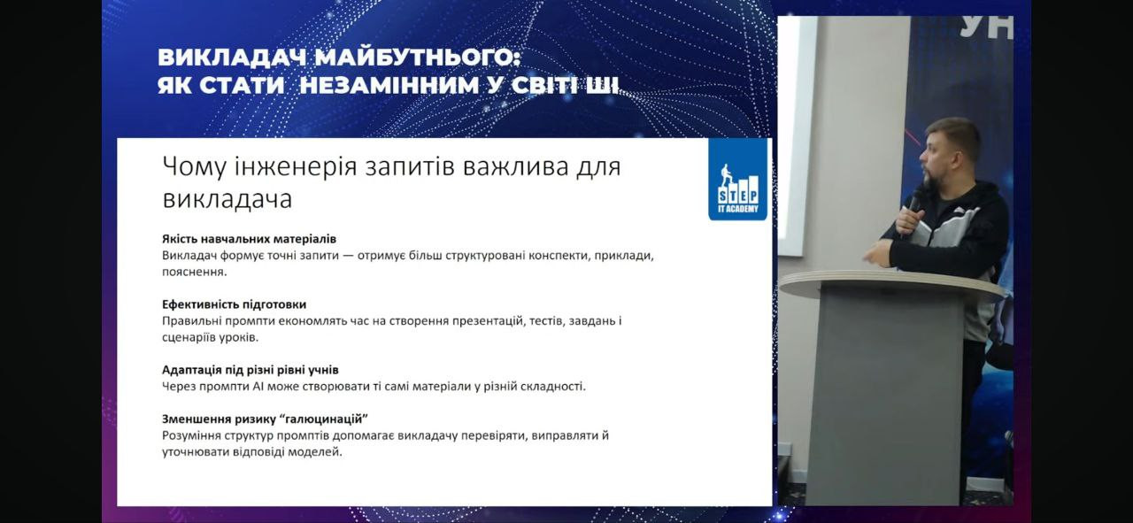 14 листопада 2025 року в ПЗВО «Одеський технологічний університет ШАГ» відбулася І-а Регіональна науково-практична конференція «Викладач майбутнього: як стати незамінним у світі штучного інтелекту», що об’єднала викладачів, науковців, аспірантів, студентів та фахівців IT-галузі з різних регіонів України. Подія пройшла у змішаному форматі, забезпечивши максимально широкий доступ до сучасних знань та обміну професійним досвідом. Наші викладачі активно долучилися до роботи конференції та взяли участь у професійних дискусіях. Захід став майданчиком для натхнення та професійного зростання завдяки виступам запрошених експертів:
