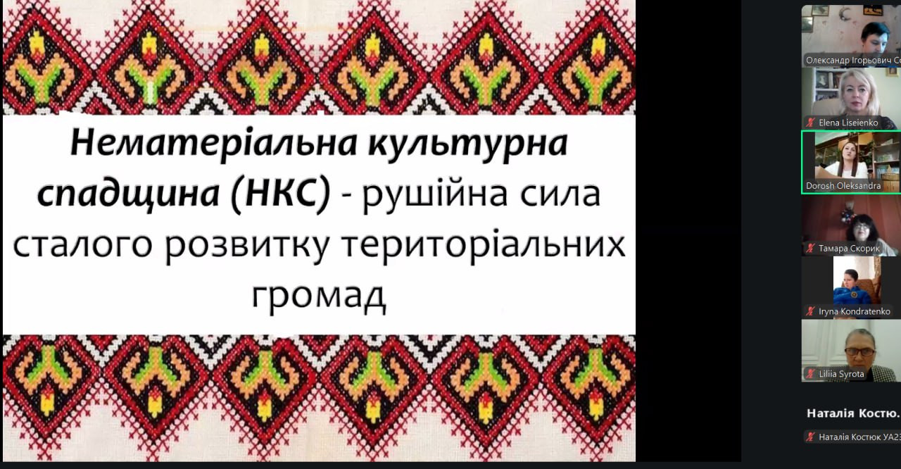 10 грудня 2025 року здобувачі першого (бакалаврського) рівня вищої освіти спеціальності D3 «Менеджмент» 1 року навчання, спеціальності 028 «Менеджмент соціокультурної діяльності» 2-4 років навчання разом з гарантом, д. соц. н., професором Оленою Лісеєнко та викладачами кафедри філософських і соціологічних студій та соціокультурних практик на запрошення партнерів – кафедри мистецьких дисциплін Національного університету «Чернігівський колегіум» імені Т. Г. Шевченка відвідали у онлайн-форматі гостьову лекцію на тему: «Нематеріальна культурна спадщина – рушійна сила сталого розвитку територіальних громад».