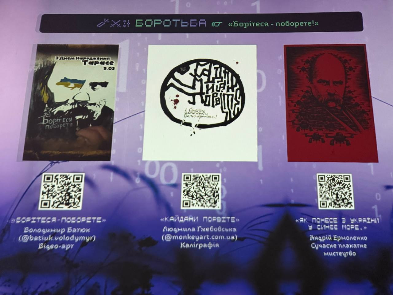 Виставка цифрового мистецтва «Шевченко як Open Source опору/спротиву» поєднала цифрову галерею, імерсивне відеошоу та доповнену реальність (AR), через яку глядач яку може досліджувати роботи. Проєкт демонструє, як сучасні художники переосмислюють постать Тараса Шевченка мовою цифрових технологій, актуалізуючи теми опору, спротиву та боротьби за ідентичність.