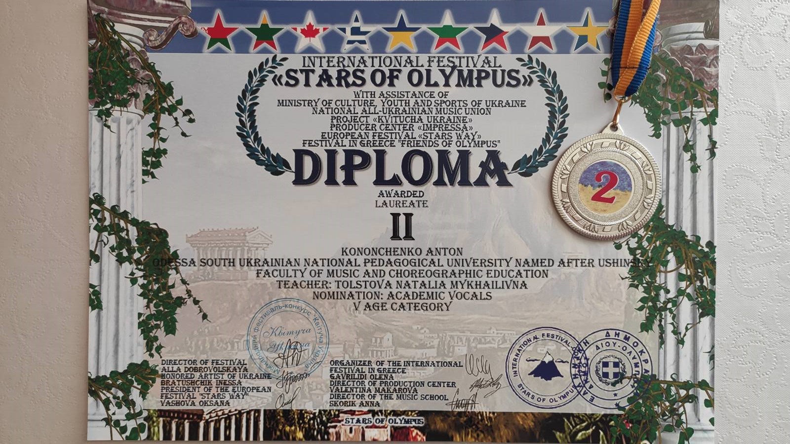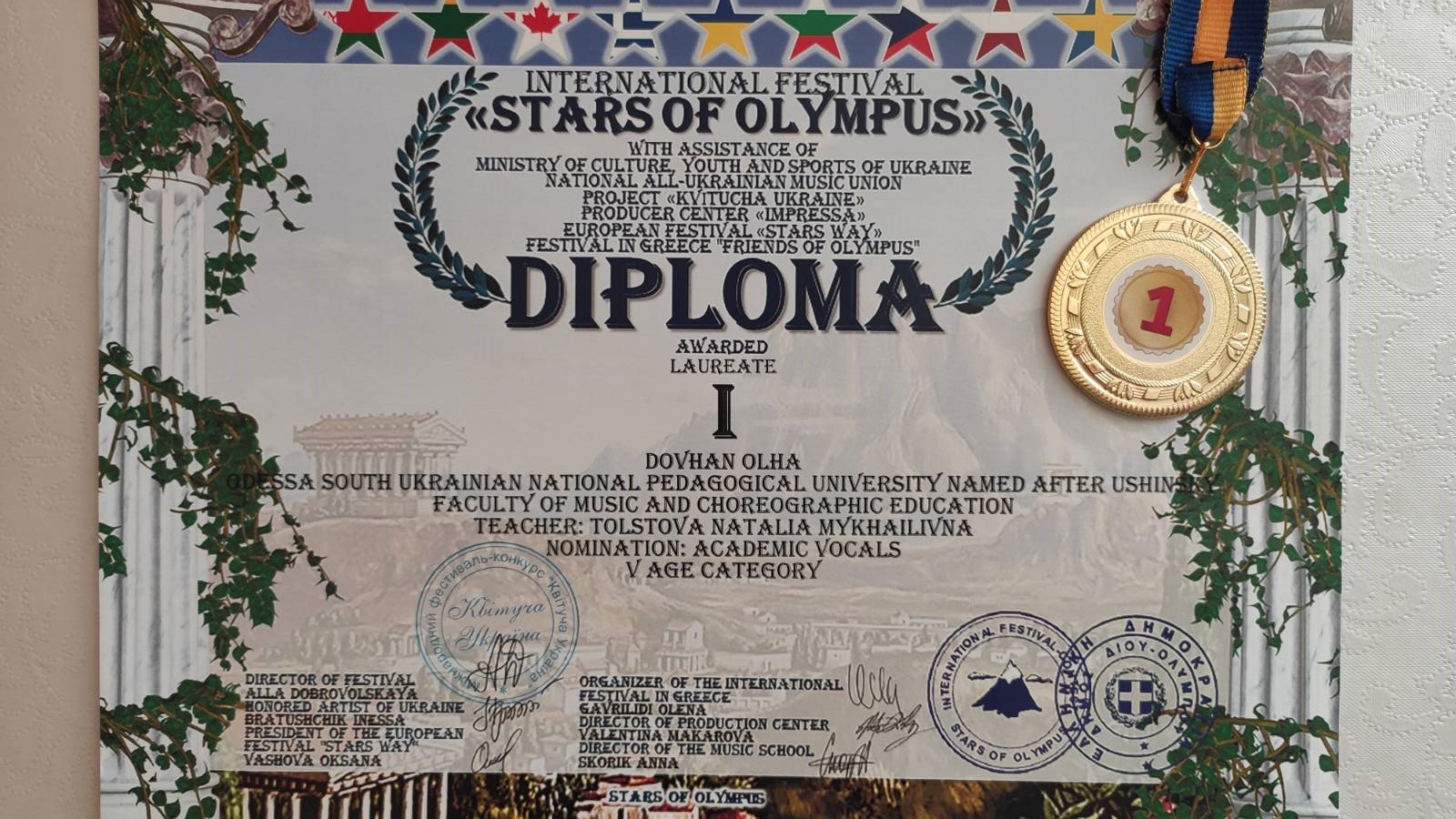 Міжнародний дистанційний фестиваль-конкурс "Stars of Olympus" пройшов в м. Київ 25 червня 2020 року. В номінації «Академічний спів» переможцями стали студенти факультету музичної та хореографічної освіти: