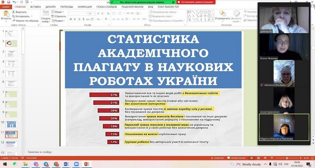 Презентацію відкрила декан факультету, доц. Білова Н.К. виступом щодо впливу системи академічної доброчесності на якість освіти студентів. Викладачі кафедри мали можливість дізнатись про законодавчі ініціативи щодо дотримання академічної доброчесності в Україні та про акредитаційні процеси освітніх програм. Окрім цього, слухачі конференції також мали змогу послухати про вплив на академічну доброчесність дизайну освітніх програм, форматів оцінювання та методів викладання і комунікації зі студентами.