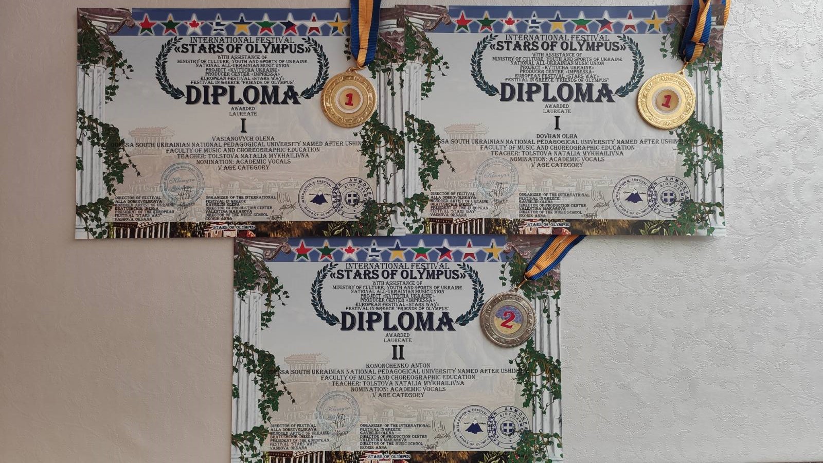 Міжнародний дистанційний фестиваль-конкурс "Stars of Olympus" пройшов в м. Київ 25 червня 2020 року. В номінації «Академічний спів» переможцями стали студенти факультету музичної та хореографічної освіти:
