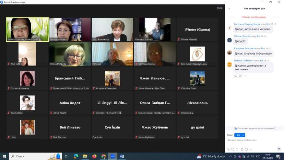 21 грудня 2023 року відбулася гостьова лекція доктора педагогічних наук, професора, проректора з наукової роботи Коломієць Алли Миколаївни та аспіранта Кушнира Олександра Вінницького державного педагогічного університету імені Михайла Коцюбинського за темою «Використання штучного інтелекту в навчанні та наукових дослідженнях». У лекції взяли участь здобувачі третього (освітньо-наукового) рівня вищої освіти ОНП «Освітні, педагогічні науки», «Професійна освіта», «Середня освіта (Музичне мистецтво)», «Мистецька педагогіка вищої освіти», гаранти освітньо-наукових програм, завідувач і викладачі кафедри педагогіки, наукові керівники аспірантів. Під час лекції значна увага була приділена використанню можливостей штучного інтелекту під час роботи над дисертаційною роботою, була надана корисна інформація щодо сайтів, на яких презентовано функції штучного інтелекту, показано практичні можливості роботи зазначених сайтів, як з ними працювати тощо. По закінченні лекції викладачі і аспіранти мали можливість поставити запитання, які в них виникали під час лекції, й отримати ґрунтовні відповіді. Усі учасники лекції відзначили її цікавість, змістовність й актуальність і корисність.
