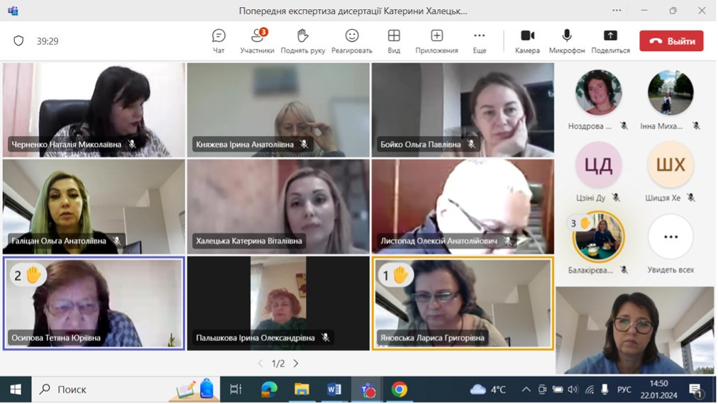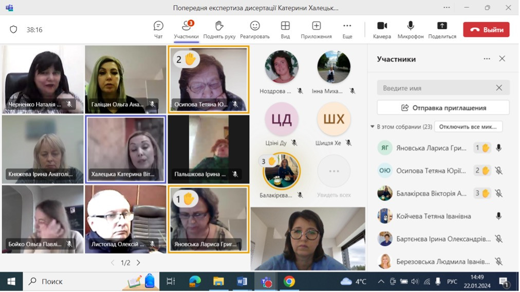 22 січня 2024 року на засіданні наукового (фахового) семінару з педагогічних наук Університету Ушинського відбулась презентація й обговорення дисертаційного дослідження аспірантки кафедри педагогіки Катерини Халецької з теми «Формування прогностичної компетентності майбутніх учителів математики у закладах вищої освіти», науковий керівник – доцент Ольга Галіцан.