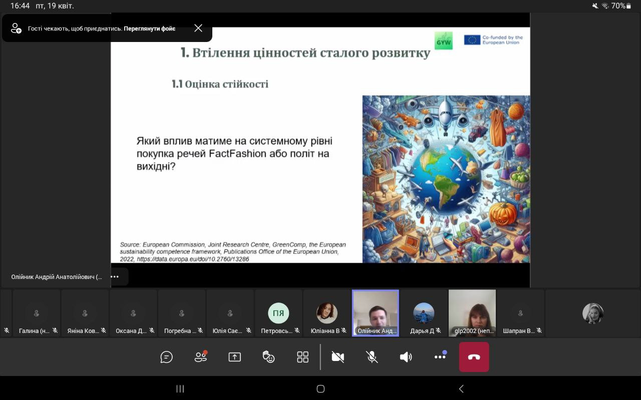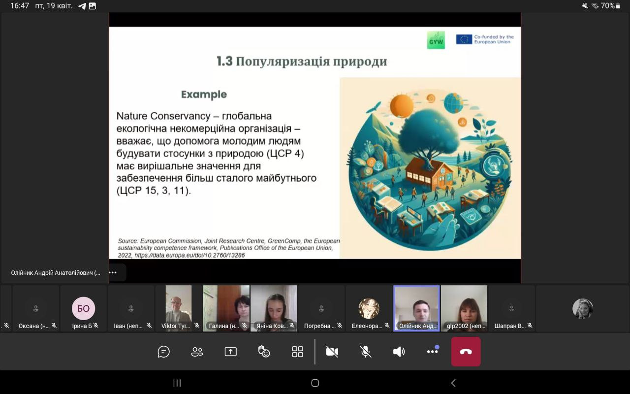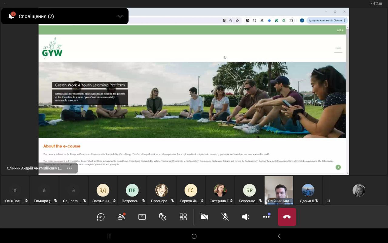 Участь студентів в освітній програмі міжнародного проєкту «GYW. Green Work 4 Youth: green skills for young people with fewer opportunities for reducing of the risk of marginalisation the labour market in the transition to a sustainable economy» (Erasmus +