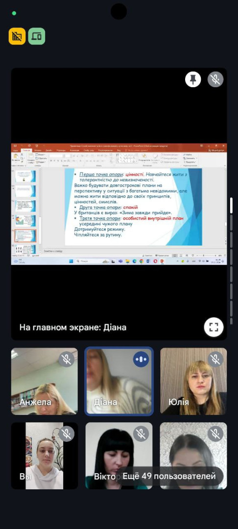 29 листопада о 11.00 студенти ОПП «Початкова освіта. Практична психологія» за спеціальністю 013 Початкова освіта за першим (бакалаврським) рівнем вищої освіти відвідали гостьову лекцію Дроздової Діани Сергіївни, кандидата психологічних наук, доцента кафедри психології Горлівського інституту іноземних мов ДВНЗ «Донбаський державний педагогічний університет» (м. Дніпро) з теми «Спокій: значення та його трансформація у сучасному світі».