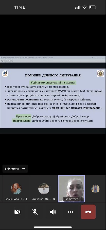 21 квітня 2023 року аспіранти спеціальностей 011 Освітні, педагогічні науки і 015 Професійна освіта взяли участь в онлайн-лекції для здобувачів освіти «Онлайн-комунікація для здобувачів вищої освіти».
