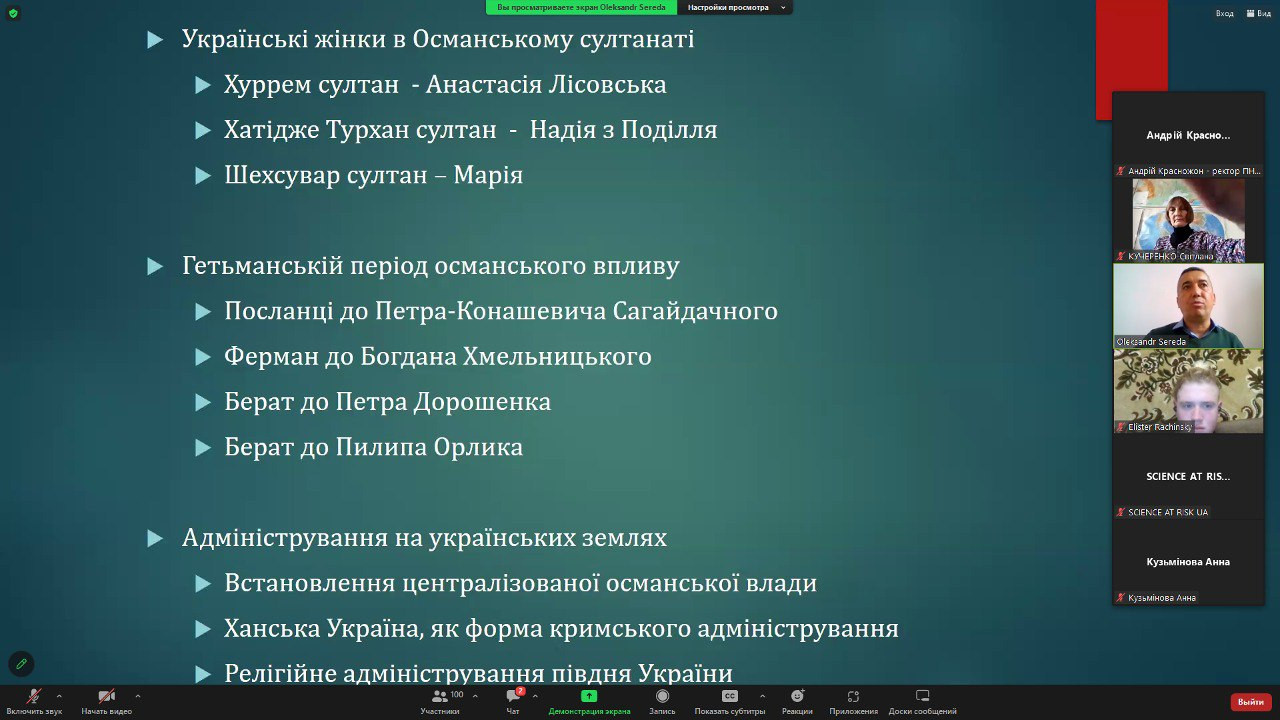 7 листопада 2023 року, на запрошення міжнародного проекту «SCIENCE AT RISK Emergency Office» в Південноукраїнському національному педагогічному університеті імені К. Д. Ушинського відбувся науковий семінар Олександра Середи «Османський цивілізаційний вимір України».