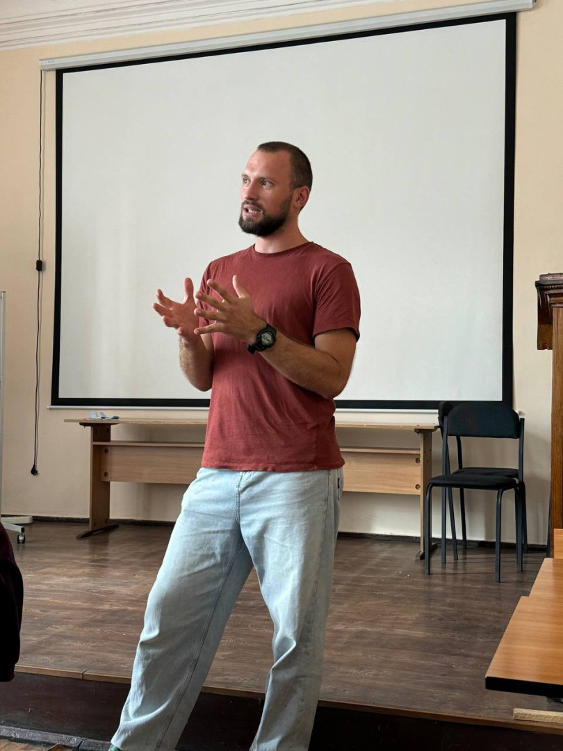 16.10.2024 року відбулася зустріч з ветераном ЗСУ, відомим українським режисером та письменником Володимиром Омельченком та студентами 1 та 2 курсів історико-філологічного факультету.