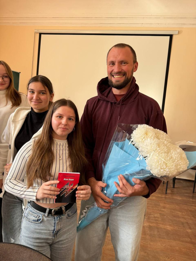 16.10.2024 року відбулася зустріч з ветераном ЗСУ, відомим українським режисером та письменником Володимиром Омельченком та студентами 1 та 2 курсів історико-філологічного факультету. Під час зустрічі було презентовано його книгу "Піски півдня" - щирі роздуми людини, яка пройшла шлях від учасника революції Гідності, добровольця до офіцера ЗСУ, і писала свою книгу в коротких перервах між боями.