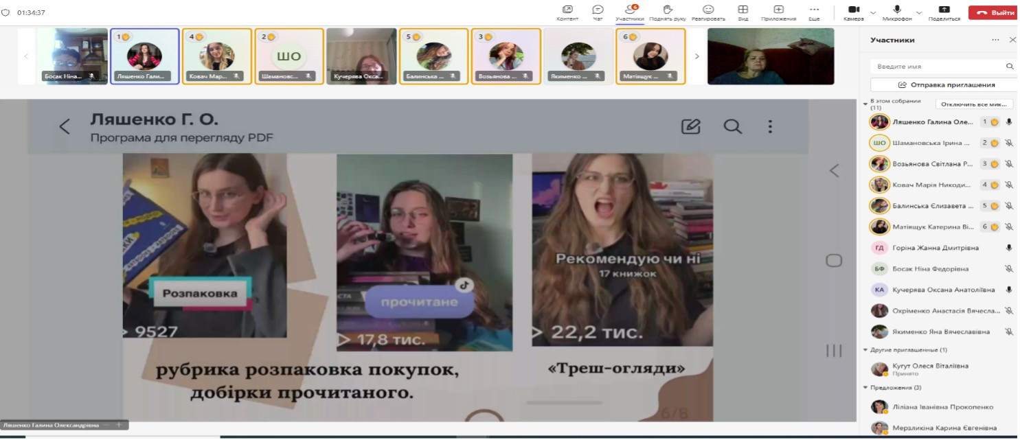 5. Ляшенко Галини «Методичний потенціал літературного блогінгу в мовно-літературній освітній галузі» (кер. доц. Ж.Д. Горіна)