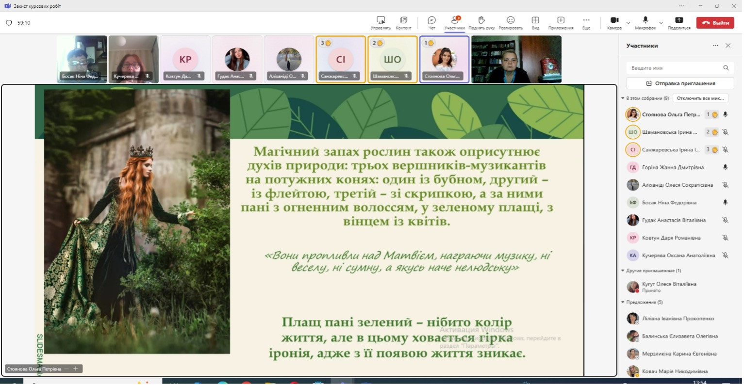 Тож цьогоріч по закінченню кількаденної сесії із захисту курсових робіт на 4 курсі (ОПП Середня освіта «Українська мова і література. Англійська мова і зарубіжна література») найкращими захистами-презентаціями були відзначені дослідження: