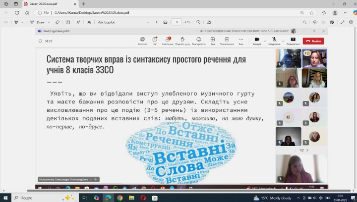 6. Шпілєвої Катерини «Інтеграція музики періоду воєнного стану з вивченням синтаксису у 8-9 класах НУШ» (кер. доц. Т.О.Євтушина)