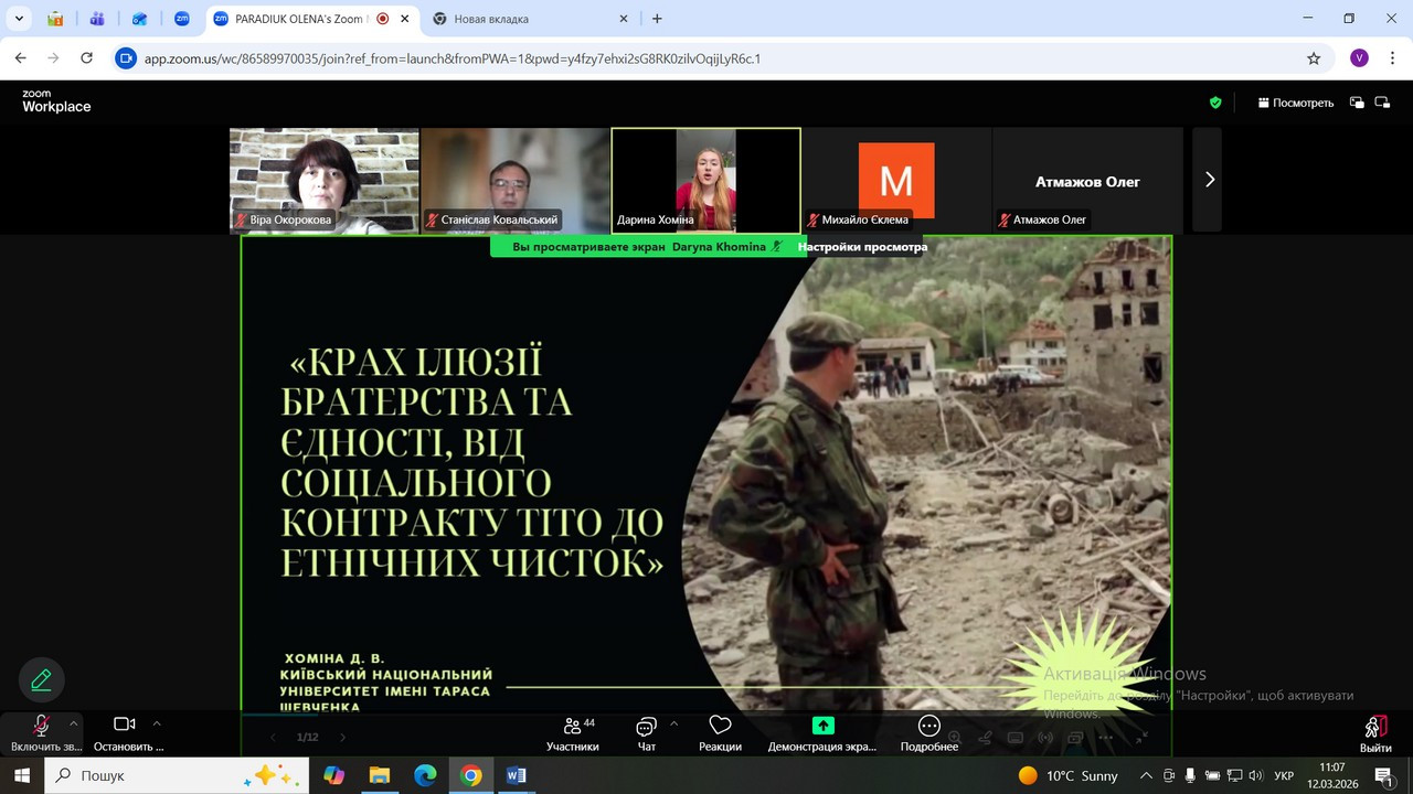 - Хоміна Д. «Крах ілюзії братерства та єдності, від соціального контракту Тіто до етнічних чисток». Здобувач третього року навчання першого (бакалаврського) рівня вищої освіти спеціальності 032 Історія та археологія
