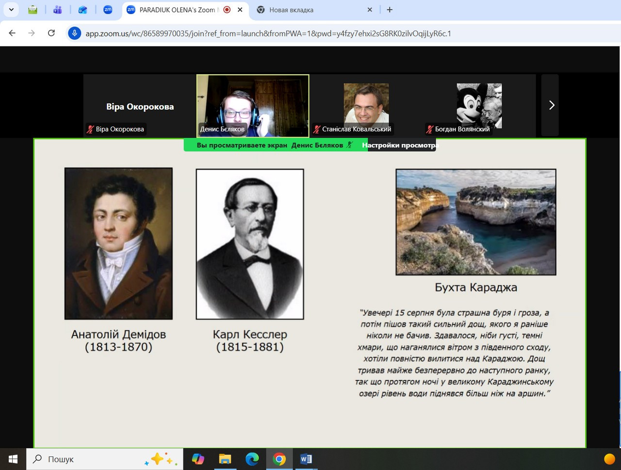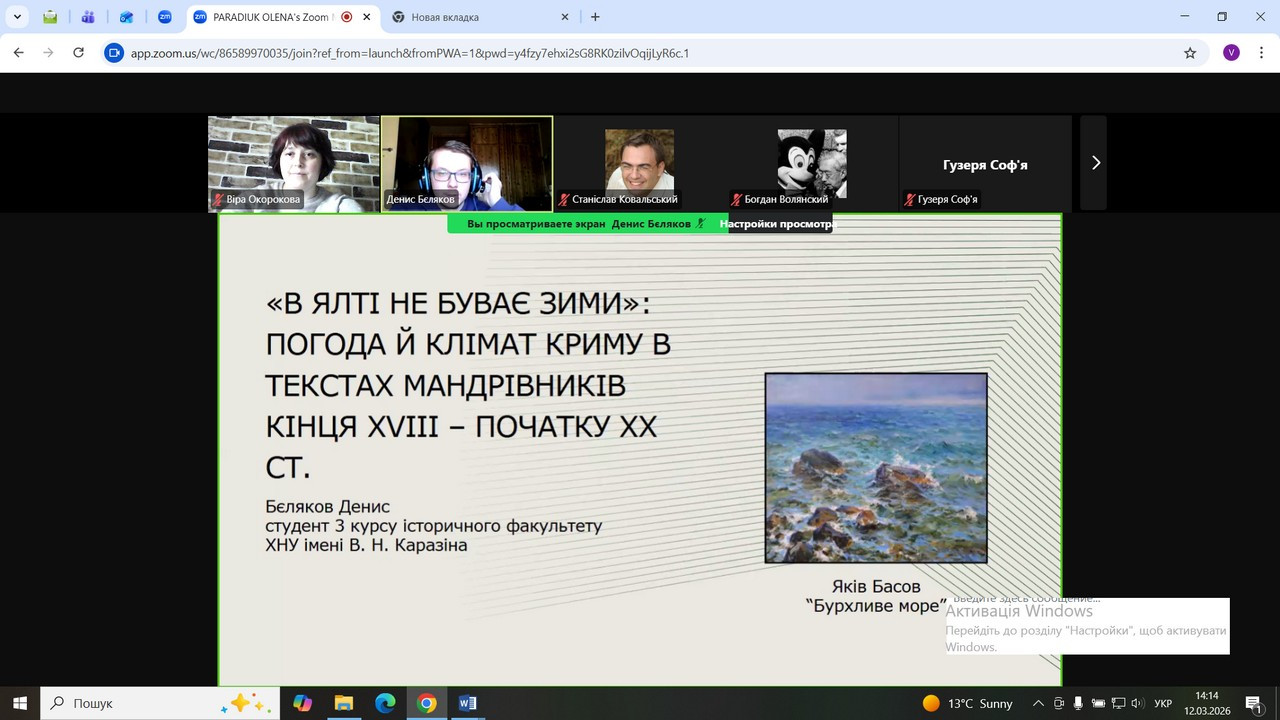 - Беляков Д. «В Ялті не буває зими»: погода й клімат Криму в текстах мандрівників кінця XVIII – початку ХХ ст.». Здобувач третього року навчання першого (бакалаврського) рівня вищої освіти спеціальності 032 Історія та археологія Харківського національного університету імені В. Н. Каразіна
