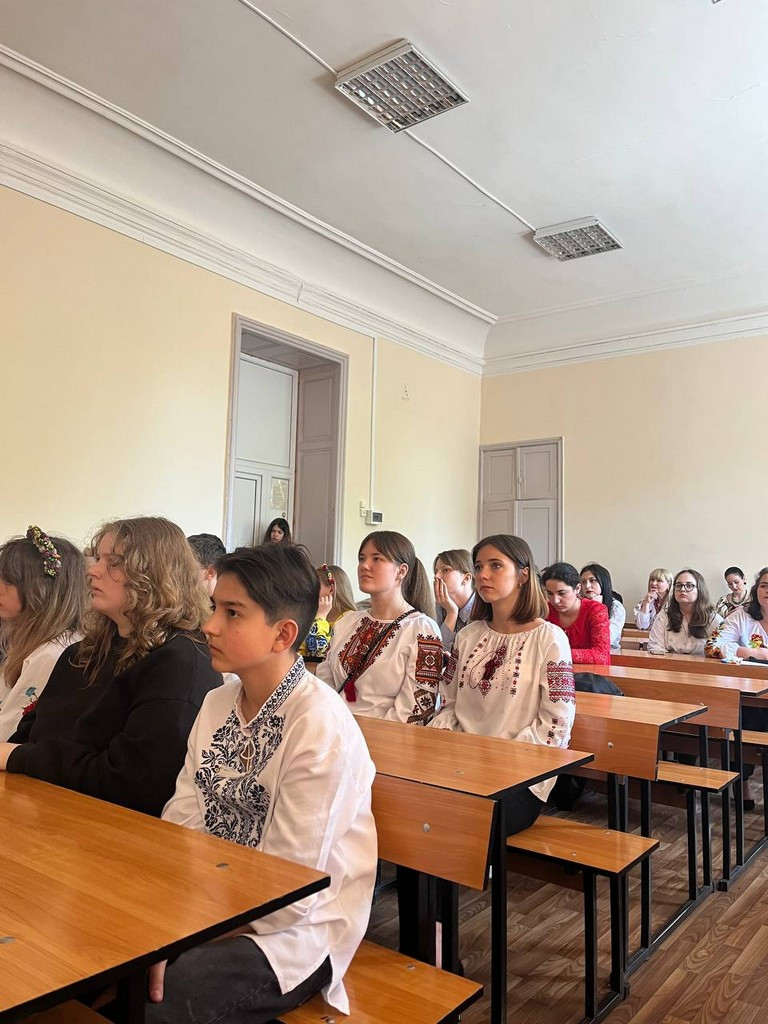 - Студенти-бакалаври філологи та історики старших курсів приготували філігранний проєкт про сучасне життя та вшанування нашої вишиванки не лише в Україні, а й у різних куточках світу. Валерія Швайка разом із Олексієм Малогою влаштували подорож, зачарували присутніх цікавими фактами, постатями різних національностей і соціальних статусів у вишитих сорочках і сукнях.