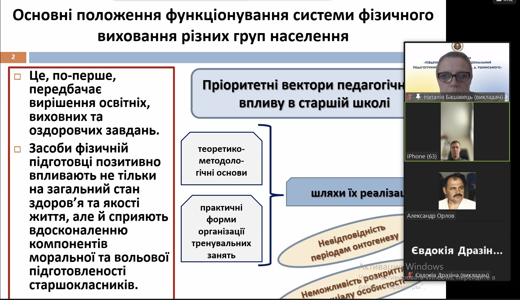 У рамках дисципліни «Сучасні проблеми фізичної культури», 22 жовтня 2024 року для здобувачів другого (магістерського) рівня вищої освіти спеціальності ‒ Середня освіта, предметної спеціальності 014.11 Середня освіта (Фізична культура) навчально-наукового інституту фізичної культури, спорту та реабілітації була проведена гостьова лекція на тему: «Особливості проведення занять з використанням засобів оздоровчої фізичної культури учнів старших класів закладів загальної середньої освіти».