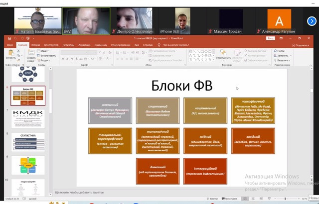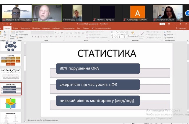 Запрошений лектор кандидат педагогічних наук, доцент НУ «Одеської політехніки» Бесєда Володимир Вікторовіч доповів результати власних наукових пошуків та педагогічних експериментів щодо умов і особливостей диференційованої корекції рухових порушень у дітей як нормотипових, так і при наявності пошкоджень опорно-рухового апарату. На лекції були присутні доктор педагогічних наук, професор кафедри теорії і методики фізичної культури та спортивних дисциплін Башавець Наталія Андріївна, кандидат педагогічних наук, доцент кафедри спеціальної та інклюзивної педагогіки і реабілітації Начинова Олена Василівна, кандидат наук з фізичного виховання і спорту, доцент Дразіна Євдокія Володимирівна, викладач кафедри теорії і методики фізичної культури та спортивних дисциплін Воробйова Софія Володимирівна, студенти-магістранти першого року навчання денної та заочної форм.