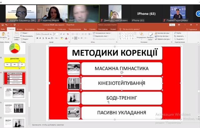 Лекція стимулювала здобувачів вищої освіти до поглиблення, розширення та збагачення знань щодо використання комплексних методик оздоровлення, та методик диференційованої корекції рухових порушень організму.