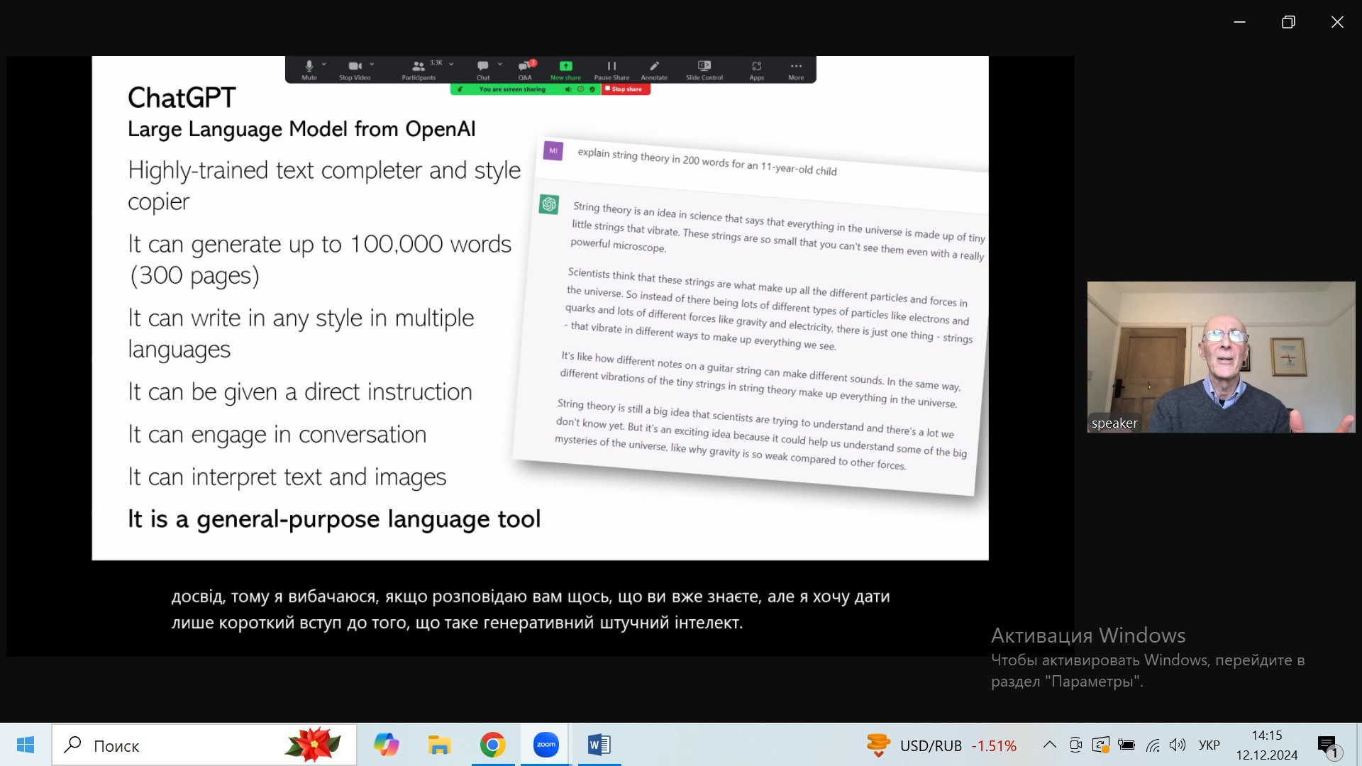 12 грудня 2024 року, 14:00 за Києвом. Тема: «Генеративний штучний інтелект і освіта: можливості та виклики». Спікер: професор Майк Шарплз, The Open University, UK.