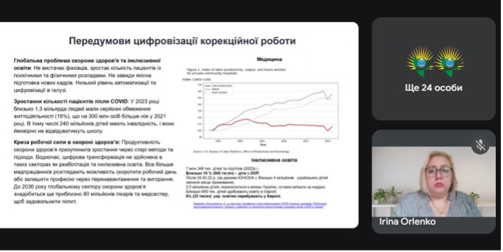 03 квітня 2025 р. Орленко І. М., доцент кафедри спеціальної та інклюзивної освіти взяла участь у семінарі на тему: «Сучасні інтерактивні технології в реабілітації дітей та дорослих». Під час семінару учасники активно обговорювали актуальні питання реабілітації дітей та дорослих за допомогою сучасних інтерактивних технології, співпрацю з інклюзивно-ресурсними центрами тощо. Орленко І. М виступила з доповіддю «Роль психолога у мультидисциплінарній команді реабілітації з використанням інноваційних інтерактивних технологій».