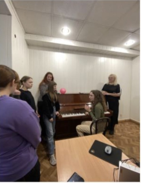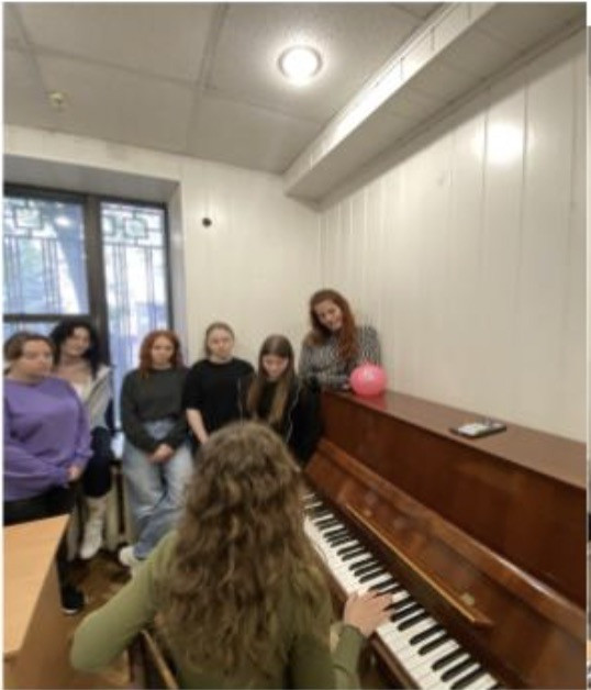 Студентка 3 курсу Хівренко Тетяна підготувала цікаву доповідь, власноруч зіграла на фортепіано і запропонувала долучитись усіх присутніх до співу.