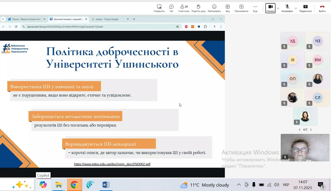 7 листопада 2025 р. здобувачі вищої освіти, які навчаються за другим (магістерським) рівнем ОПП Середня освіта (Фізична культура) відвідали лекцію з теми «ШІ у науковій діяльності: як не порушувати академічну доброчесність», яку проводила директор бібліотеки Університету Ушинського Максим Оксана.
