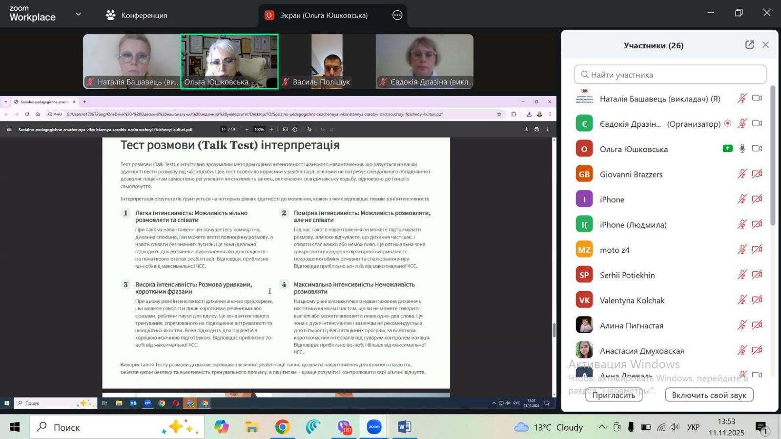 Особливу увагу було приділено педагогічним аспектам організації занять оздоровчої спрямованості, питанням адаптації навантажень до різних вікових груп, методам контролю інтенсивності фізичних навантажень, принципам побудови ефективних оздоровчих програм. Під час лекції лекторка акцентувала на ролі фахівця з фізичної культури у формуванні свідомого ставлення до власного здоров’я та популяризації здорового способу життя серед молоді.