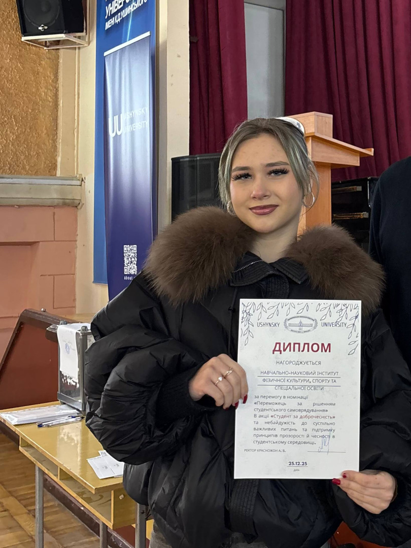 Дипломом за перемогу в номінації «Переможець студентського самоврядування» в межах акції «Студент за доброчесність» відзначено Навчально-науковий інститут фізичної культури, спорту та спеціальної освіти — за послідовне утвердження принципів академічної доброчесності, прозорості та активної участі студентства у вирішенні актуальних питань університетського життя.