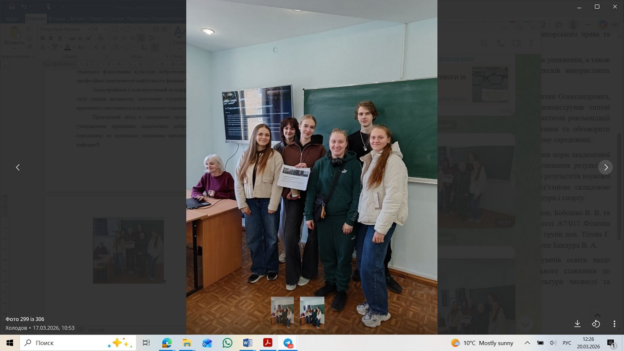 16 березня 2026 року, в рамках Тижня академічної доброчесності старший викладач Дишель Галина Олександрівна провела зустріч зі студентами кураторської групи у форматі кейс-сесії за темою: «Таксономія порушень академічної доброчесності в освітньому середовищі».