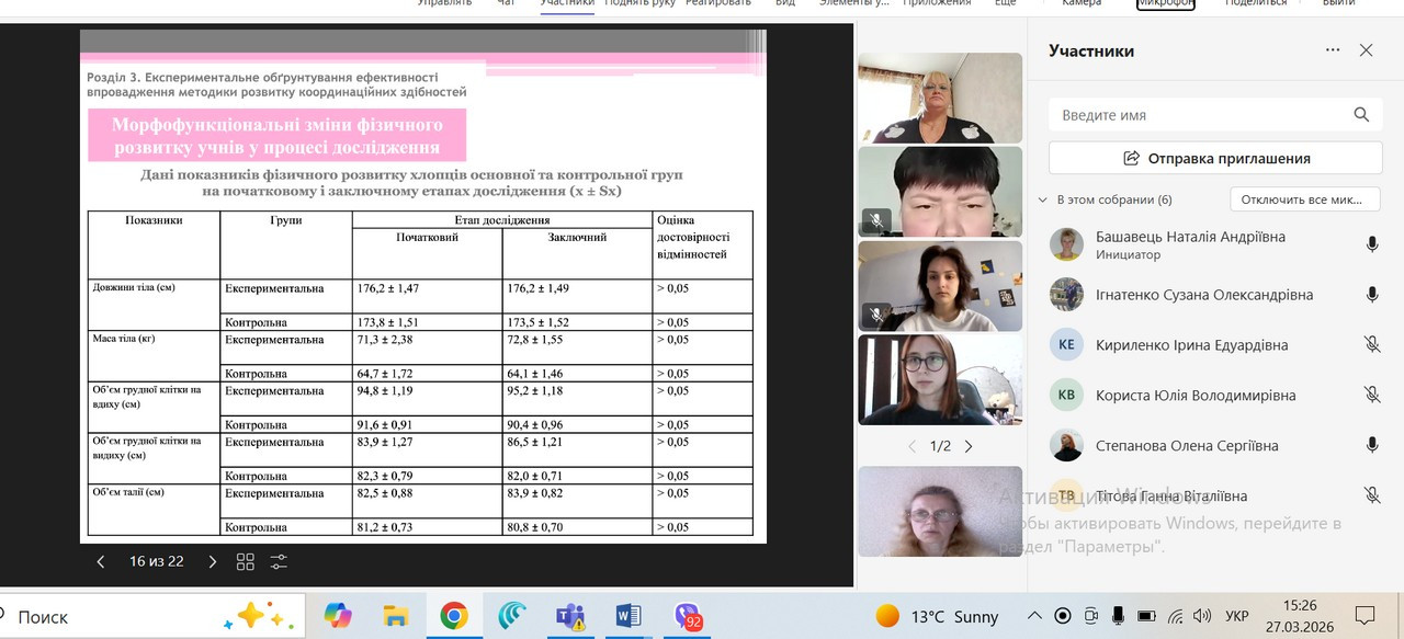27 березня 2026 року проведено перший тур Всеукраїнського конкурсу студентських наукових робіт зі спеціальності «Середня освіта (Фізична культура)» з дотриманням умов безпеки на виконання наказу від 20 січня 2026 року № 13-нд «Про проведення першого туру Всеукраїнського конкурсу студентських наукових робіт з галузей знань і спеціальностей у 2025/2026 навчальному році».